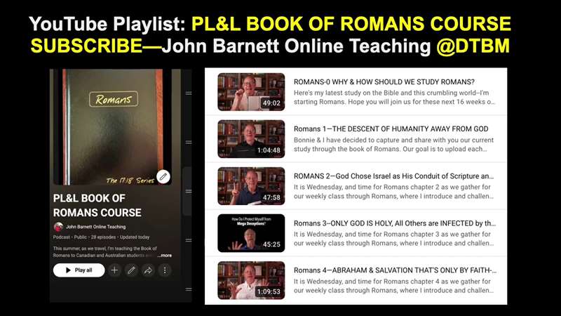 We just finished the Romans course. There it is. You can get it at John Barnett Online Teaching on YouTube at DTBM. The Paul's Life and Letter book of Romans course. That's exactly how you're going to see the Thessalonians course come out, and each of the lessons are going to be right there for you on YouTube.