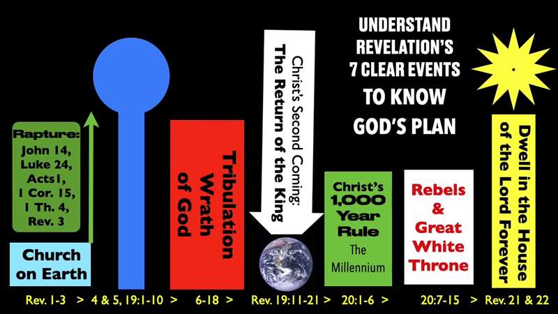 And that's where the book of 1 and the book of 2 Thessalonians, those epistles completely mesh with the book of Revelation. Here's the book of Revelation. If you watch me very long, you've seen this. The book of Revelation starts with us, the Church on Earth, then God's promises are fulfilled. He takes, as Jesus promised in John 14, in Luke 24, and in Acts 1, and as Paul illustrates in 1 Corinthians 15, and right here in 1 Thessalonians 4, and again, John says in Revelation 3, the Church on Earth is raptured to Heaven. What for? Because of what 1 Corinthians says, the Church in Heaven is going to give an account for whether or not we lived for the Rapture ready imperatives. And then of course, we're not here, but we're watching from above.