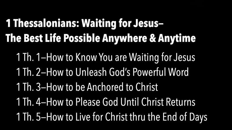 Chapter three is how to be Anchored to Christ. Chapter four is How to Please God Till Christ Returns. And Chapter five has 15 imperatives. I call this the Rapture Ready Commands. If you want to be ready, wait till we get to chapter 15, How to Live for Christ Through the End of Days. And it works anywhere at any time. And we're going to cover each of those and it's the most closely packed together set of little, short commands. Remember, these people didn't get a copy of the Bible to buy and take home with them. They had to listen. And so, Paul, as the letter was being read to the Thessalonians that he wrote in Corinth and sent to them, they could hear these short little commands and they could hold them and remember them and act on them. Oh, we should be so thankful we have everything right here and we should spend time studying and working on this.