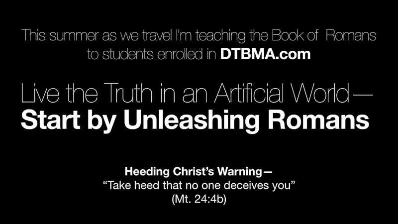 So, when I talk about DTBMA, what I'm talking about is this course that you're watching is Live The Truth In An Artificial World- Starting by Unleashing the Book of Romans and you are coming through that class with me. And what we're going to do is, and what I'm going to show you, because this is Class Zero. The next one tomorrow, Lord willing, if I can get everything ready and get down to the studio is going to be going through chapter one, but today is the whole basis for the study.