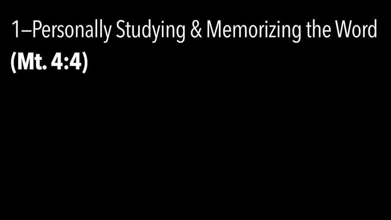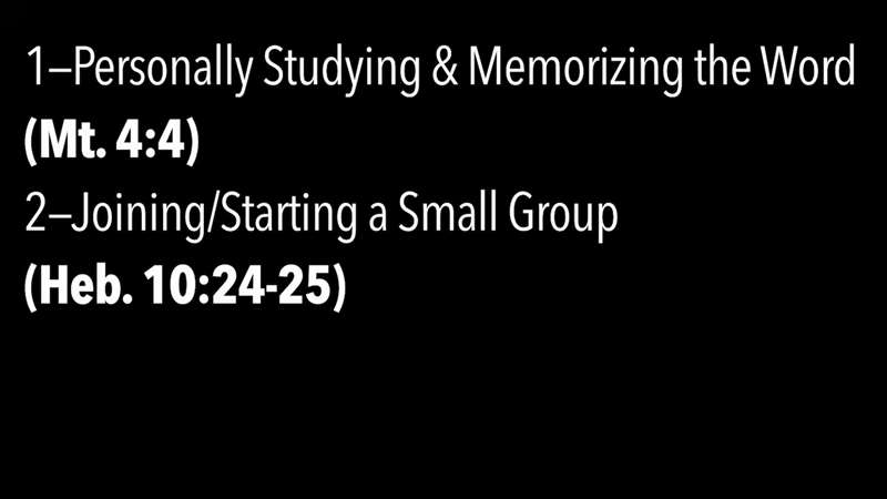 Okay, back to the slides. So, number one, you and I should be personally involved in studying and memorizing the Word, Matthew 4:4. We should be in a local church, but within that local church, find or start a small group where we can not only study the Bible, but apply the Bible and be held accountable.