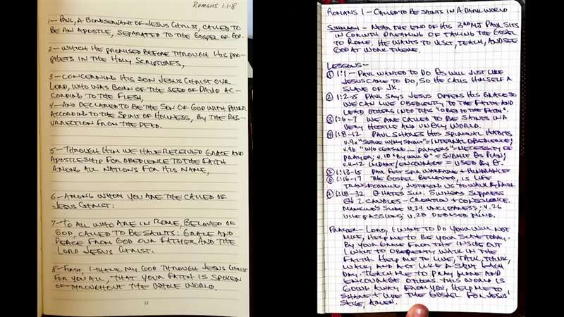 Now, this is an example of the 17:18 book I showed you where I'm handwriting every verse of Romans. This is an example of the Paul's Life and Letters course that's on YouTube where we're going through every one of Paul's epistles, interleaved with every chapter. And it's a yearlong intensive study. And that's all available on YouTube.