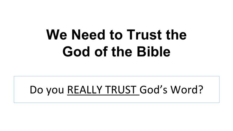 Okay. Real quickly, why do we even have a Bible Institute? You notice there's a small letter word before Bible Institute. [Word of Life Bible Institute.] It's because we need to trust the God of the Bible. My question to you, you're a second or third year student is, do you really trust the Bible? Do you really understand what you have in front of you? That this actually is God talking to you.