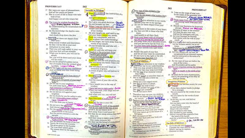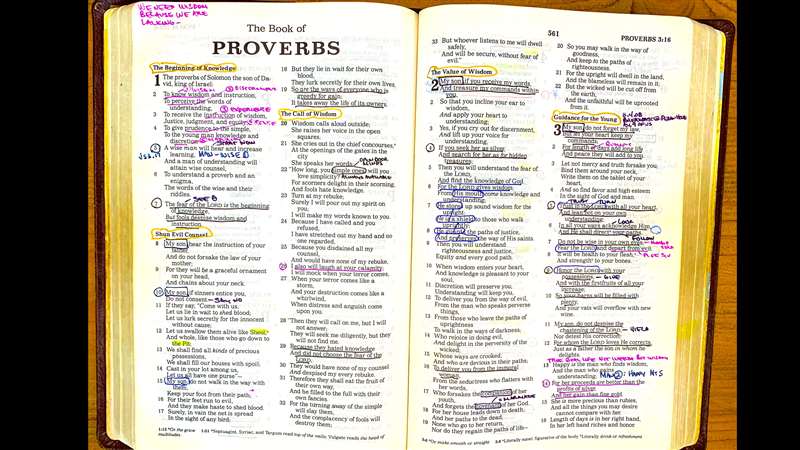 Now, if you look at the slides, living life God's way. That's really what the book of Proverbs is about. You can see the book of Proverbs here, and then what you're seeing on the screen, that is actually my Bible. My Bible is marked up from all the times I've read through in preparation for this class of Exploring the Book of Proverbs.