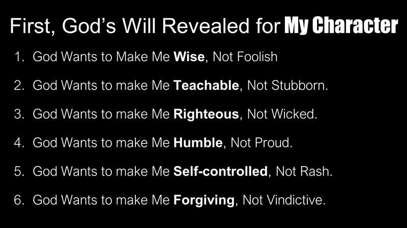 Next slide. God wants to make me wise, not foolish, so these six areas of my life point toward Him. Number one, God wants me to fear Him. That's basically what Proverbs 9:10 says.