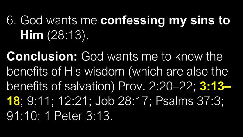 What's the conclusion? God wants me to know the benefits of His wisdom, which by the way are also the benefits of salvation. Turn with me to Proverbs chapter 3 and let me read to you starting in verse 13.
