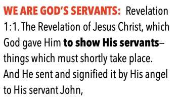 Back to verse 1. This book came to us as God's Servants. What are God's servants? They're the ones He describes in verse 3. Here you can tell if you're God's servant, number one, you want to read this book because when you read this book, you're hearing the voice of God. I got up this morning in the dark. I usually get up about five o'clock every morning. I get the supreme privilege if I will stop everything else and do not immediately go check everything online and look at all the latest from everybody. There's this little communicator sitting somewhere, everywhere I'm staying. And if I just open this up anywhere in the world I am, I can hear the voice of God. This is the Word of God, and He's speaking. As God's servant, I can't get enough exposure to His Word.