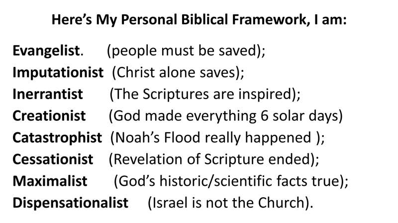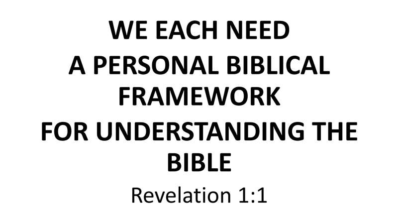 That's the framework to which I see the Bible and that's the framework that helps me understand the Bible and I trust will help you.