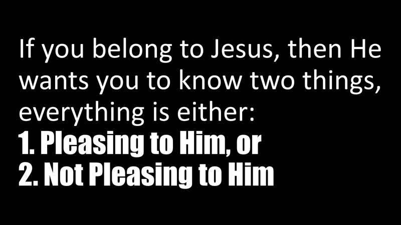 If you belong to Jesus, He wants you to know two things. Every choice in life, either pleases Him or doesn't. There's no middle ground, nothing is neutral, nothing is neutral. Paul put it this way. 1 Corinthians 10:31, “whether therefore you eat or drink or whatever you do, do all for the glory of God”.