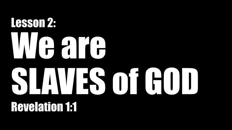 Second lesson, Revelation 1 says which God wrote to His servants. We are slaves of God. God said a servant is someone who does the will of their master. God said we're His servants. Jesus is our master. That goes back to redemption. Do you remember when I was showing you about redemption? We were redeemed, were bought at a price. The book of Revelation says we're slaves. A slave does the will of another. Do you know who goes to Heaven? Jesus said those who do the will of my Father in Heaven.