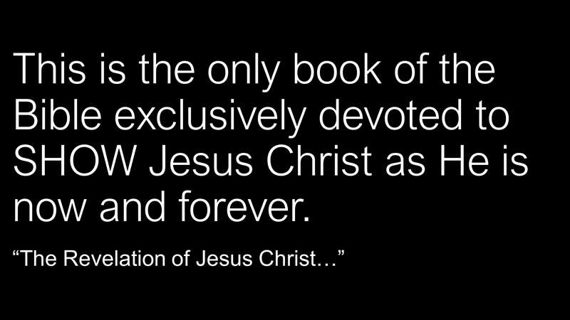 This is the only book of the Bible, the book of Revelation, that's exclusively devoted to show Jesus Christ as He is now, and forever. Look at the first four words, “the Revelation of Jesus”. That's what Revelations about.