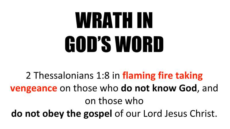 But in God's Word, Paul warns, and there's this wrath kind of backdrop to the Gospel and flaming fire taking vengeance on those who do not know God and don't obey the Gospel. So, we who are saved know God and obey the Gospel, but those who don't are facing this wrath.