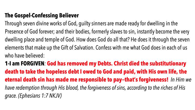 The just shall live by faith. The Gospel-confessing believer believes that through seven divine works, a guilty sinner is made ready for dwelling in the presence of God forever and their bodies formerly slaves to sin, instantly become the very dwelling place in Temple of God. That's what salvation does. Romans explains how God does all that. He does it through seven elements.