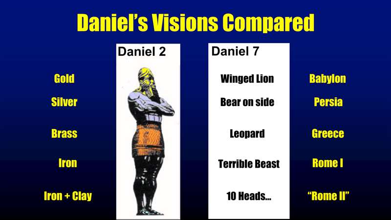 This is what Daniel said twice in Daniel 2 and Daniel 7, he said that from Daniel's time until the Second Coming of Christ-. So, from Daniel's time until the end, God says four empires are going to be forefront in His plan for the world: Babylon, followed by Persia, followed by Greece, as in Alexander the Great, followed by where we find Paul in the New Testament world, Rome One, and concluding human history with Rome Two.