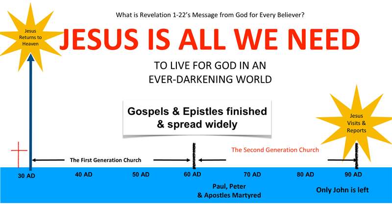 Here's the theme of Revelation. Jesus is all we need. That's why He's revealed. That's what John needed to know. Jesus is all we need to live for God in an ever-darkening world. If it was darkening in John's time, it's darker today. Okay?