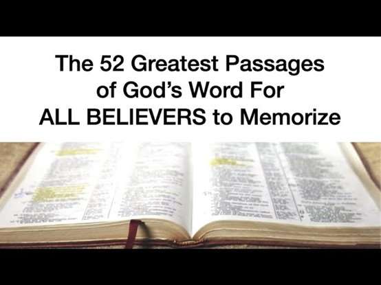 Now back to this verse, you can memorize the English. It's only 15 words in Greek. I use the first letter method. "For He made Him who knew no sin to be sin for us, that we might become the righteousness of God in Him." Those little letters that are here on my verse card helped me not to miss any of the words. Remember, every word of God is pure. Every word of God is inspired. Every word of God has the very power of God. Jesus said, sanctify them through the truth. "Thy word is truth." That is why we need these verses to be memorized. Here's the list. These 52 key passages can become for you the essence of understanding all of God's plans for us. It has what Dr. John MacArthur has concluded after his lifetime of study, one passage for every week of the year. If you learn these verses, you have learned what is the group of most vital. These are the most vital verses in the Bible.