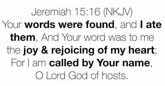 "I ate them, and Your word was to me..." And this is what happens when we memorize verses and meditate on them, "the joy and rejoicing of my heart." Why?