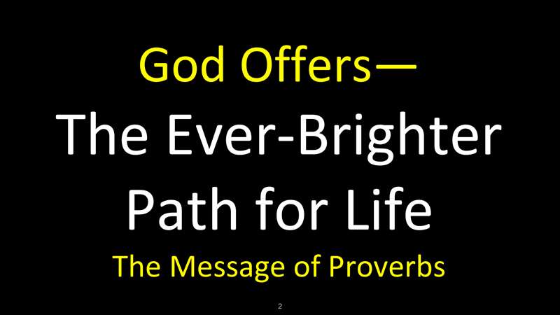 Proverbs is God's desire for us to understand how to live life His way instead of our way on the ever-brighter path.