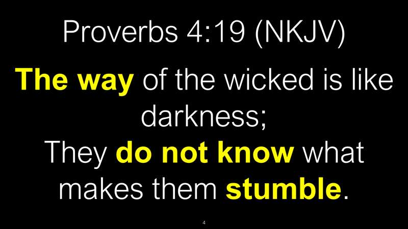 This whole idea of God comparing to bring his divine wisdom down to where we are so that we can understand it. Look what he says. The way of the wicked is like darkness. They do not know what makes them stumble. So, here's God's offer. He's got the ever-brighter path or that downward into the darkness, stumbling and ending up.