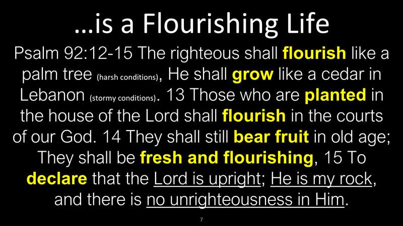 And I came to them, and I said, this is the greatest time of your life. You are supposed to be flourishing and bearing fruit in old age, you shall be fresh, verse 14, and flourishing. You notice how many times it says flourish that I've read to you. It says flourish in verse 12. It says flourish in verse 13. It says, flourish in verse 14. Do you feel flourishing?