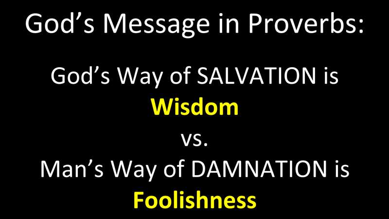 Because God's message in Proverbs is twofold. God's way of salvation is wisdom man's way, that heads to damnation, is foolishness. So, when you read Proverbs 42 times, you'll hear the word fool, foolish. That's talking about the people that are walking in the dark, stumbling and headed toward destruction, or far more times you'll see wise.